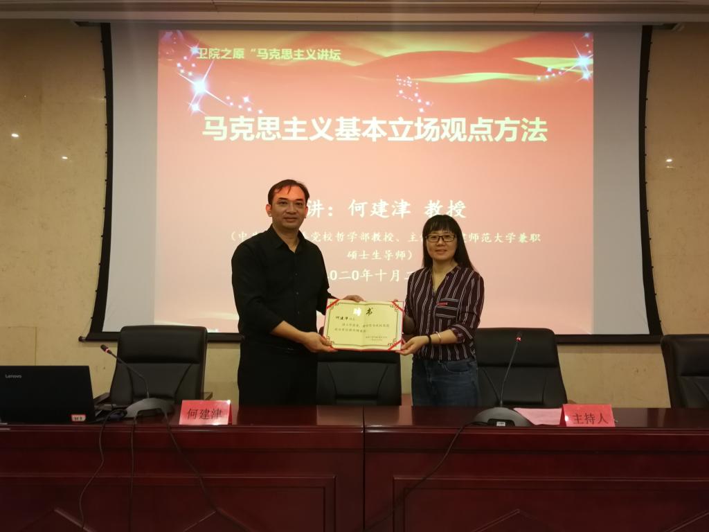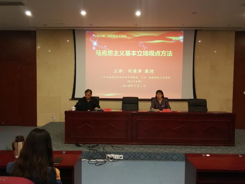 10月2日,为庆祝新中国成立71周年,“卫院之原”马克思主义讲坛邀请中共福建省委党校哲学部何建津教授为开云师生带来了一场特殊而难忘的讲座——《马克思主义基本立场观点方法》。全体思政课教师、校园网络文化舆论引导队队员参加。主讲人何建津教授,系中共福建省委党校哲学部教授、主任,福建师范大学兼职硕士生导师,主要研究马克思主义哲学经典著作及哲学基础理论与当代社会发展。