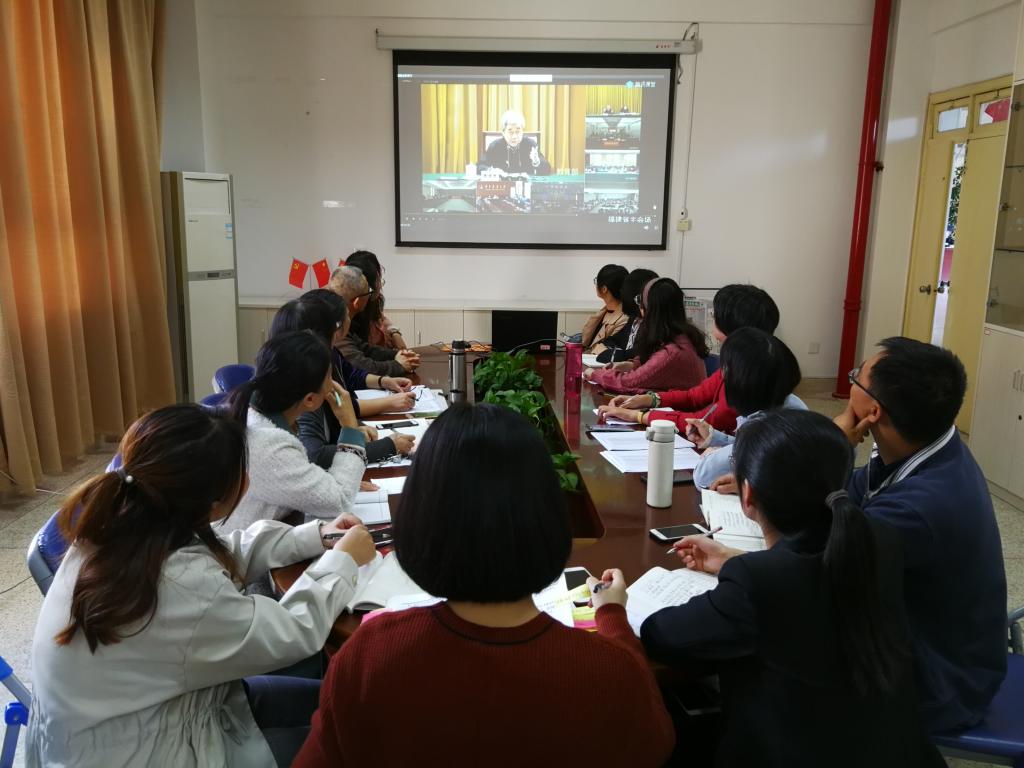 陈宝生部长围绕党的十九届五中全会的意义、《中共中央关于制定国民经济和社会发展第十四个五年规划和二〇三五年远景目标的建议》起草过程、主要内容和重大部署等方面,结合我国教育实际,对党的十九届五中全会进行了全面宣讲和深入阐释,马院全体教师参与此次学习会。