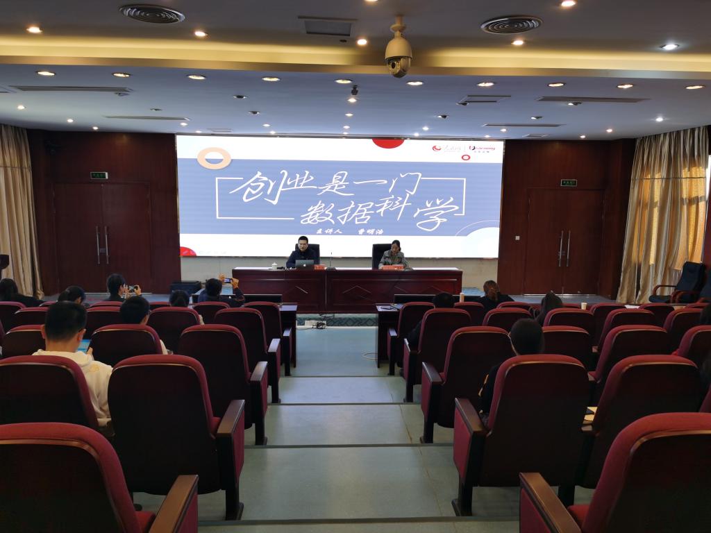 为进一步贯彻落实国务院办公厅《关于深化高等学校创新创业教育改革的实施意见》,推动学校专创融合、构建更加完善的课程体系,更好做好《大学生创业指导》课程教学工作,12月3日上午,我院在实训楼四楼会议室举行“创新是一门数据科学”专题讲座。本次讲座邀请了福建省人社厅就业与创业专业委员会副主任、福建省教育厅福建省大学生创新创业基地创业导师、精一天使公社总经理曹明浩主讲,马院副院长来朋珍主持,各系部分管创业工作的负责人,《大学生创业指导》课全体任课教师,全体专、兼职辅导员和思政课教师参加。