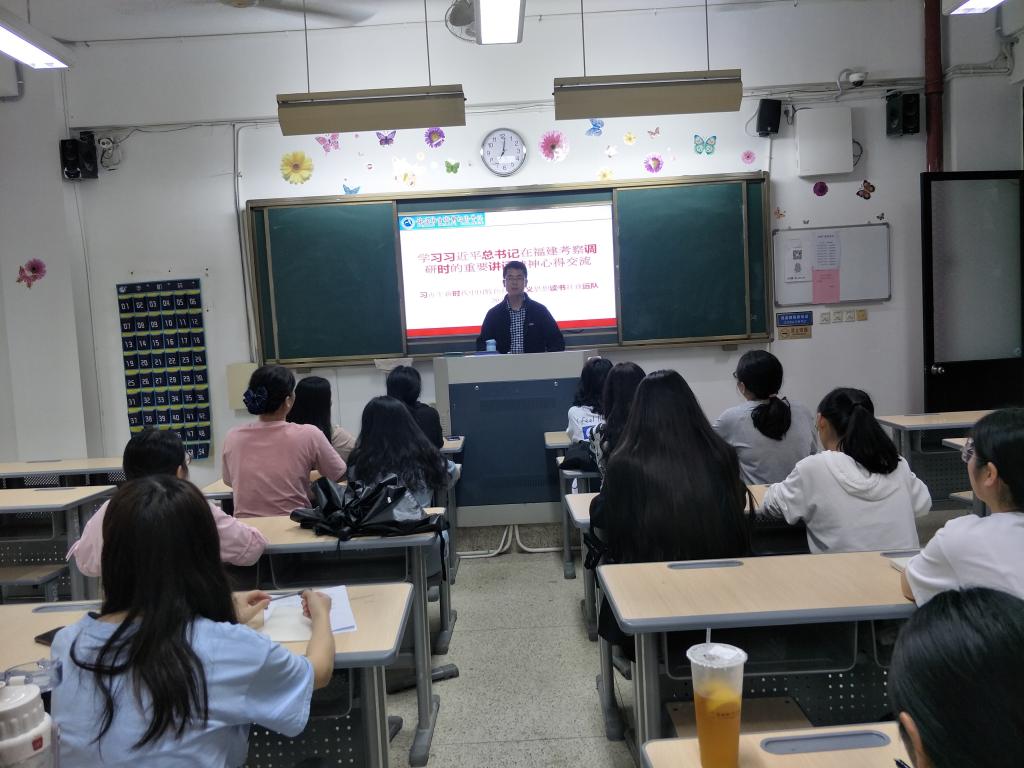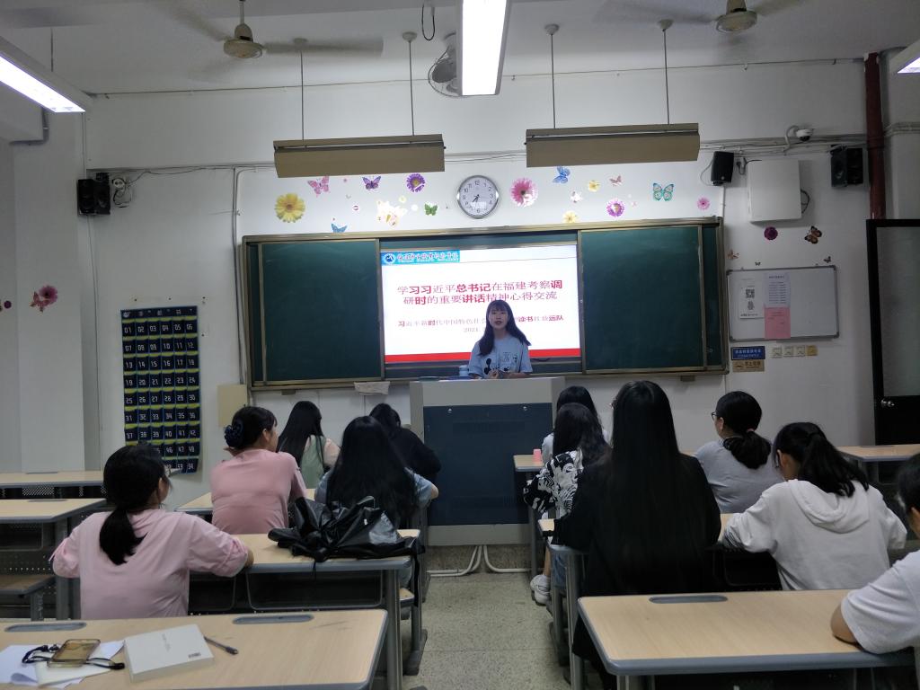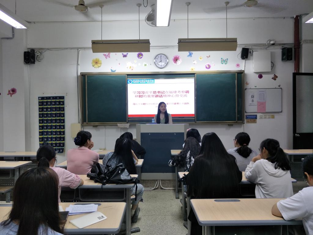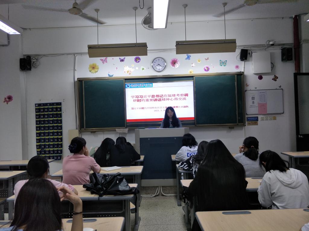 活动上,江洪老师首先简要介绍了3月22日至25日,习近平总书记亲临福建考察调研的情况,指出习近平总书记在考察调研过程中发表了一系列重要讲话,内容丰富、内涵深刻、意义深远,我们要紧跟步伐,深入进行学习研究。接着,社团学生依次登上讲台,分享学习心得。