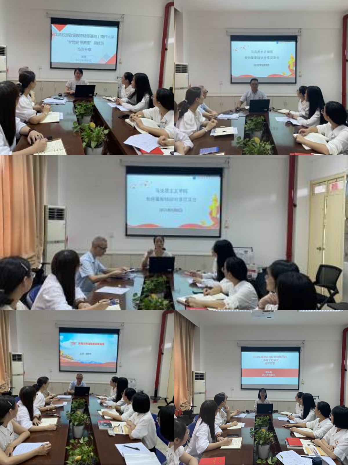 胡济林、来朋珍、吴薇、张崇飞和颜冰凤作为暑期各级各类培训的教师代表,分别对培训学习的心得体会进行了交流分享,认为要落实好立德树人的根本任务,作为思政课教师要树立不断精进的学习理念,在理论研究上下功夫,在教学改革上下功夫,让学生感受到理论的真理力量,不断提高理论水平、理论素养,提升讲好思政课的底气。