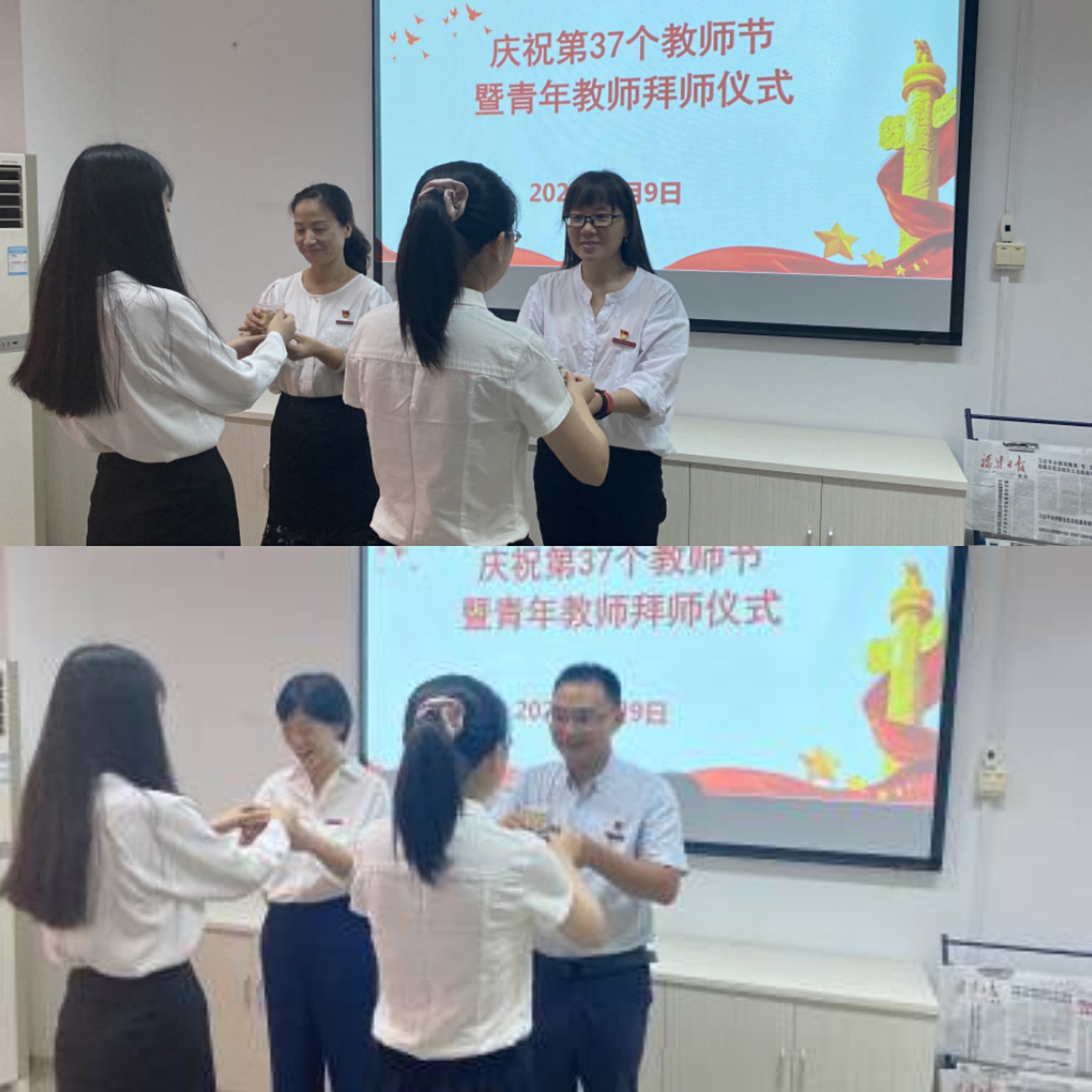开云在线登录app入口马克思主义学院于2021年9月9日举办了以“守立德树人初心,担为国育才使命”为主题的教师节庆祝活动,马克思主义学院全体老师共聚一堂欢度第37个教师节暨青年教师拜师仪式。活动由直属马克思主义学院党支部书记熊美兰主持。
