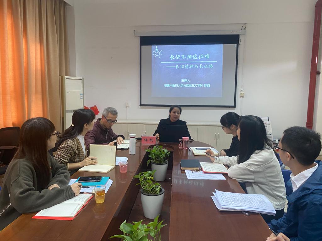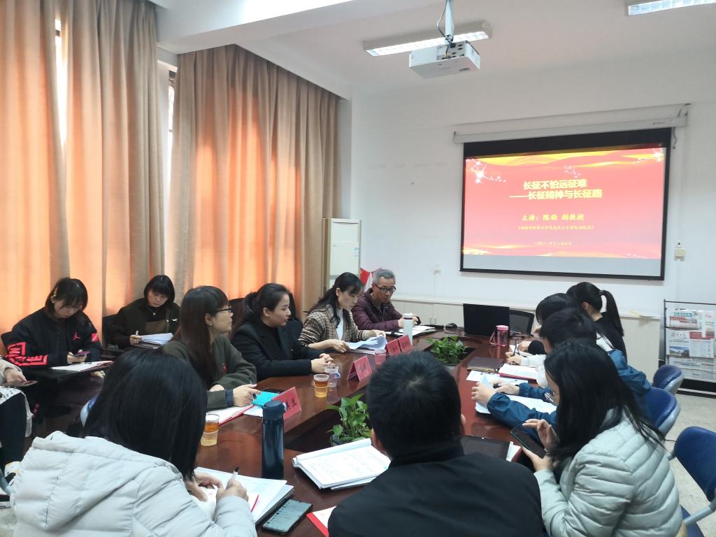 为庆祝中国共产党成立100周年暨红军长征胜利85周年,致敬革命先辈,弘扬长征精神,2021年12月9日,开云邀请福建省高校“中国近现代史纲要”课程教学研究中心专家、福建中医药大学马克思主义学院副院长陈韵副教授在行政楼107会议室作题为《长征不怕远征难——长征精神与长征路》专题讲座。讲座由马克思主义学院副院长来朋珍主持,马克思主义学院全体教师参加。