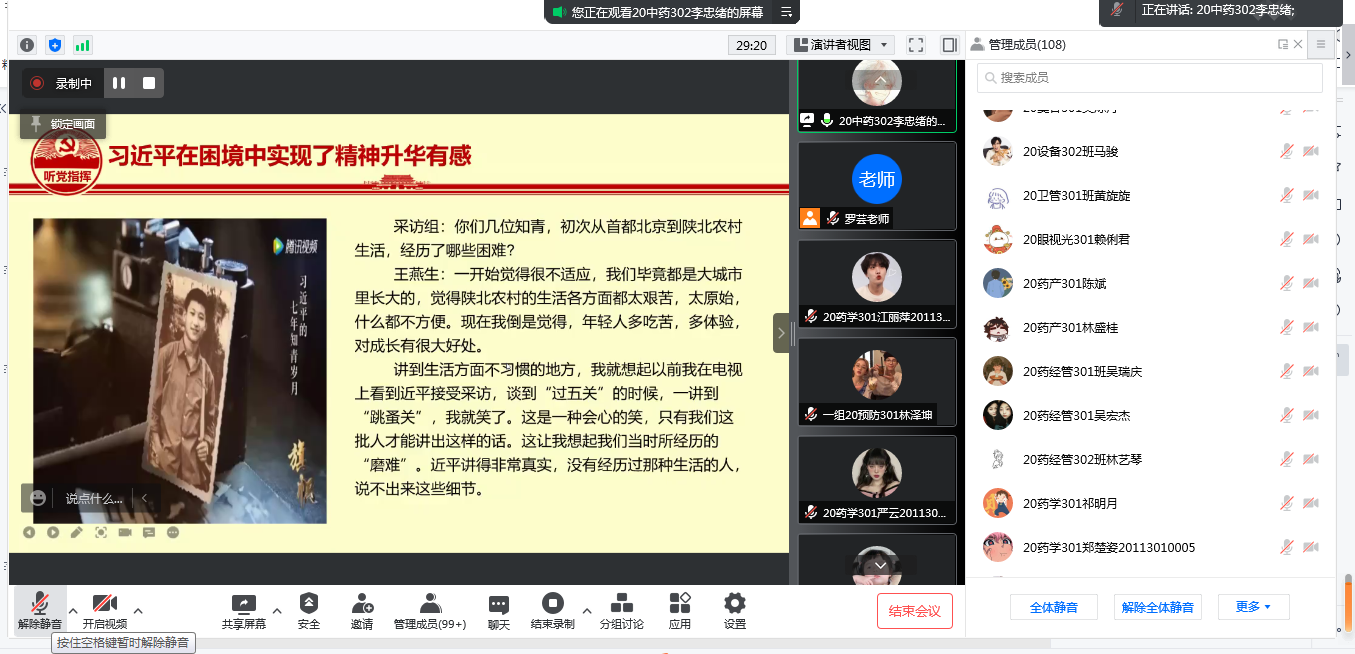 如何扣好人生的第一粒扣子?围绕着这个主题,3月28日晚,校青马班全体学员、习近平新时代中国特色社会主义思想读书社原梦队全体队员线上齐聚,以接力分享的形式,共品《习近平的七年知青岁月》。活动邀请马克思主义学院罗芸老师担任嘉宾。