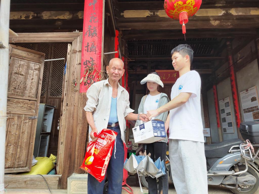 在熊美兰、罗芸、王康三位指导老师的带领下,“马上逐梦队”队员们实地走访慰问了5户困难户,为他们送上大米、牛奶等慰问品。通过入户走访,队员们与村民面对面交谈、心贴心交流,细致地了解其家庭情况、身体健康状况和生产生活等情况,并关切地提醒他们保重身体,时刻保持乐观向上的精神状态。