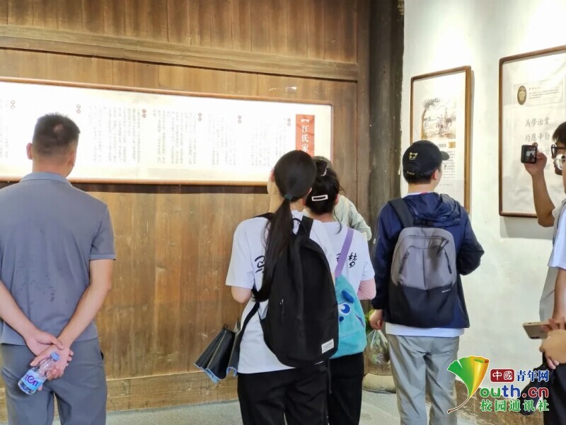 图为新坡村村干部带领着马上逐梦队的队员们参观并介绍历史悠久的古厝。中国青年网通讯员 邱炜靖 供图