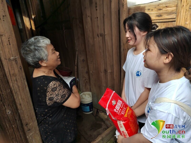 图为马上逐梦队队员们慰问新坡村的留守老人。中国青年网通讯员 邱炜靖供图