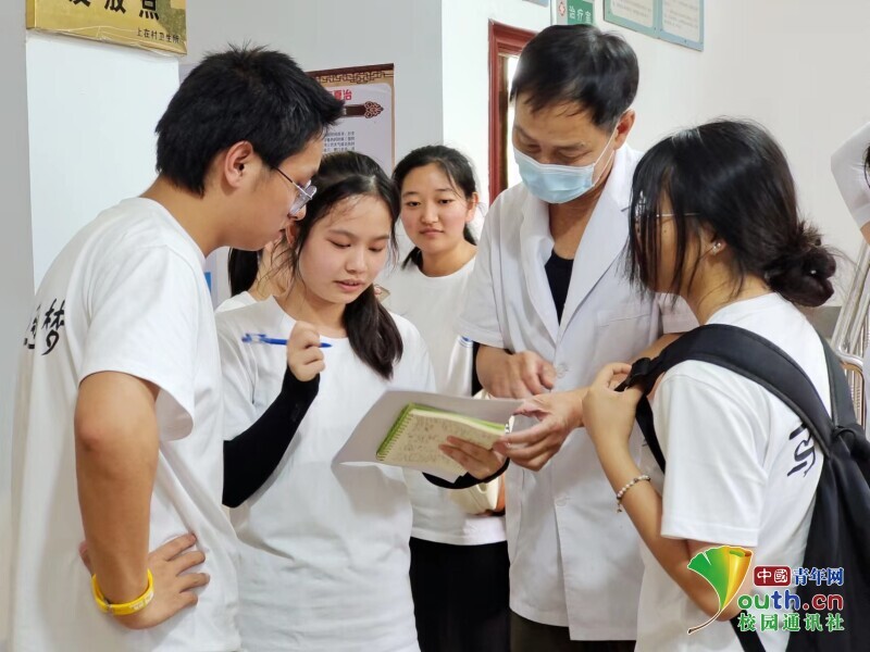 图为马上逐梦队的队员们对新坡村村医进行访谈调研。中国青年网通讯员 邱炜靖 供图