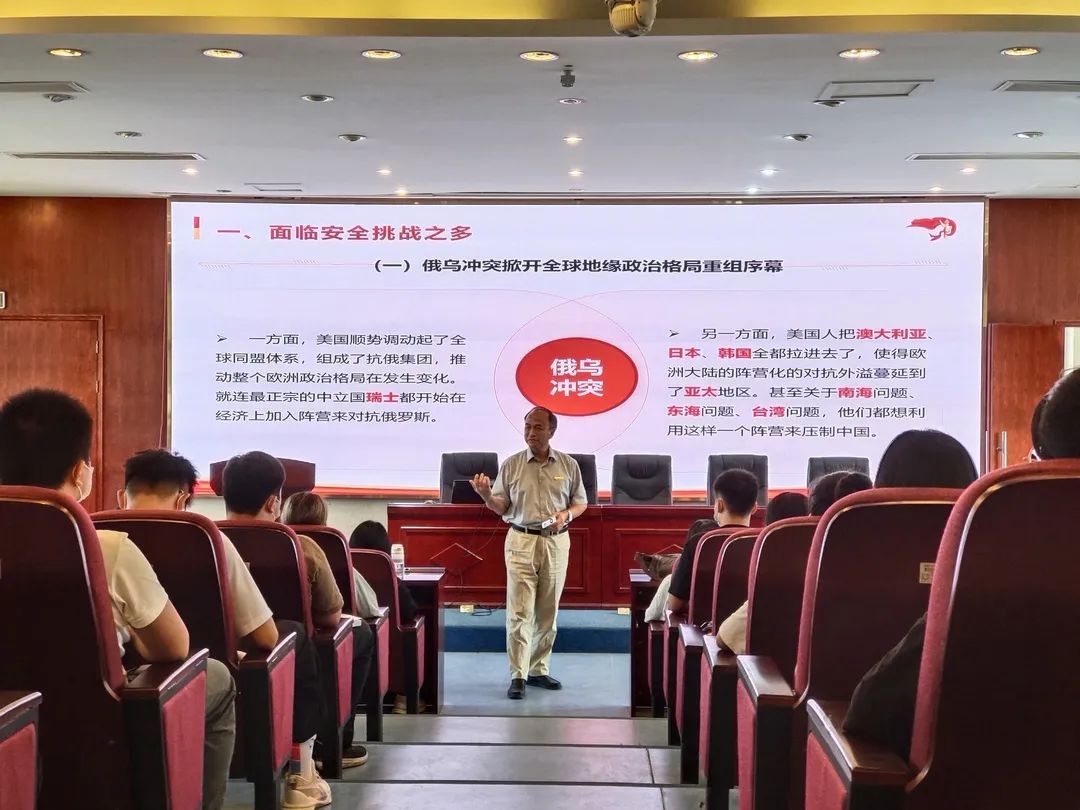 校党委书记曾武祈以“牢树全球视野 厚植家国情怀 以青春担当践行人类命运共同体理念”为题,着重梳理了当前复杂多变的国际局势、党和国家面临的安全挑战及其背后动因,为师生们带来了一堂理论深刻、视野开阔、内容丰富,极具吸引力和感染力的形势与政策课。在他的讲述中,广大师生充分感受到了中国在全球变局中化危为机、勇毅前行的卓越能力。曾武祈指出,党的二十大必将擘画发展新蓝图,赢得更加伟大的胜利和荣光,广大师生应比以往更加坚定地迎接世界的变革与挑战,以实际行动诠释自己对国家和民族的责任和担当。