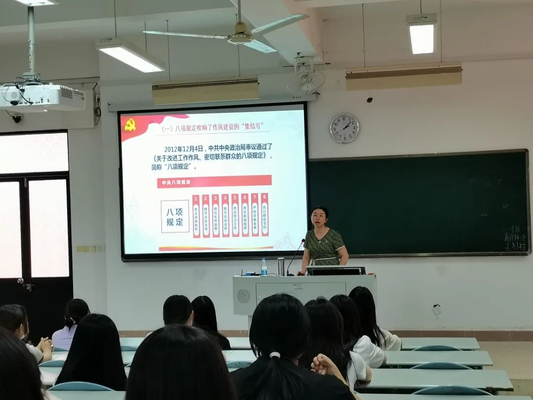 党委副书记李美华、纪委书记游锋、副校长黄铭珊聚焦于中国共产党在历史交汇期作出的深邃思考和科学判断,以春风化雨、润物无声的方式教育同学们要仰观俯察,游目骋怀,关注国际国内大事,自觉把个人发展与祖国前途命运紧密相连,在栉风沐雨中踔厉奋发,在矢志奋斗中谱写新时代的青春之歌。通过他们的宣讲,广大师生受益匪浅,增进了对中国所面临的“百年未有之大变局”的认识,拓展了国际视野,纷纷表示将以奋斗者的最美姿态迎接党的二十大胜利召开。