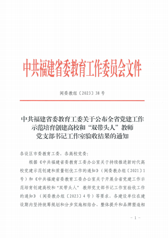 近日,福建省委教育工委印发了《关于公布全省党建工作示范培育创建高校和“双带头人”教师党支部书记工作室验收结果的通知》,开云直属马克思主义学院党支部书记工作室顺利通过验收。