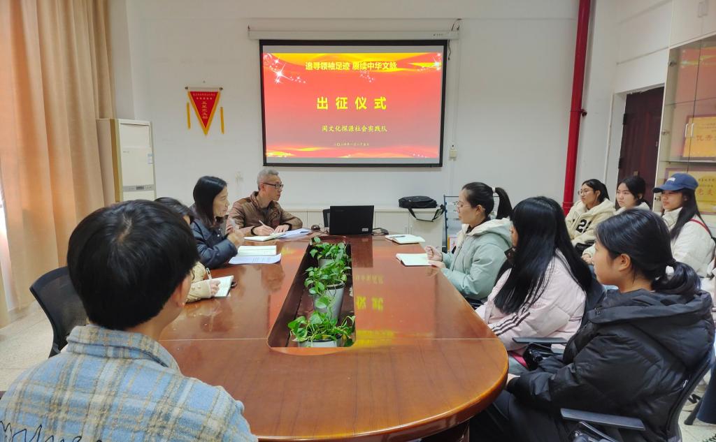 2024年1月25日下午,出征仪式在厚德楼107会议室举行,仪式由马克思主义学院副院长来朋珍主持,党支部副书记赖文金作动员讲话。随后,胡济林副教授与实践队队员作《闽文化的过去和现在》主题交流,探讨了闽文化历史沿革、精神内核和影响力。