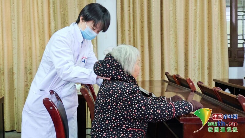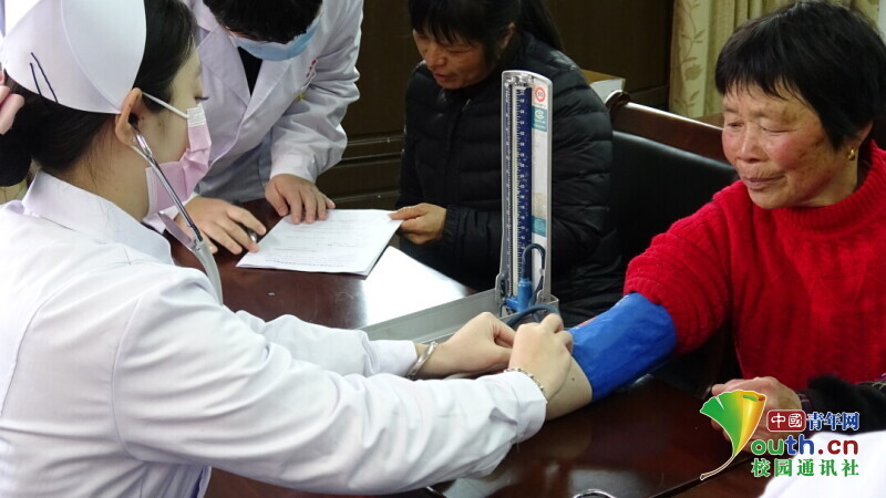 图为“医脉相承队”队员为村民进行测量血压。中国青年网通讯员 陈惜如 供图