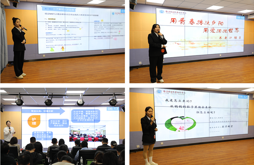 陈美嘉同学的作品《白衣笑颜,造就希望》结合自身专业优势和实践经历,围绕“工作抗压能力、专业造口知识技能和复杂病情处理能力”进行主题阐述。她明晰的职业路径,赢得了现场评委的高度认可。经现场主题陈述、评委提问、天降实习offer等环节,最后按照评审团综合分数排名,陈美嘉同学获得本次大赛成长赛道职教组金奖并晋级国赛,接下来,学校将积极筹备首届全国大学生职业规划大赛项目的训练和打磨,争取再创佳绩。