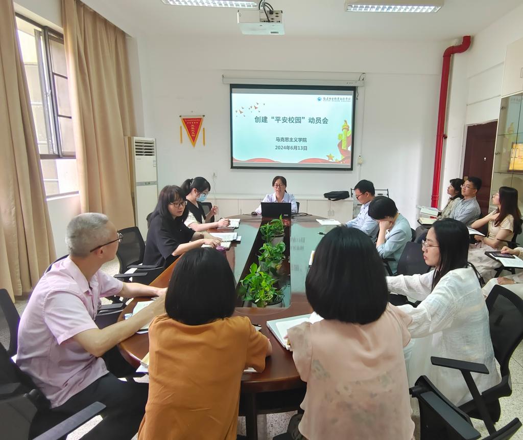 为认真贯彻落实党的二十大精神,持续推进高质量“平安校园”创建工作。2024年6月13日,马克思主义学院在厚德楼107会议室召开创建“平安校园”动员会。