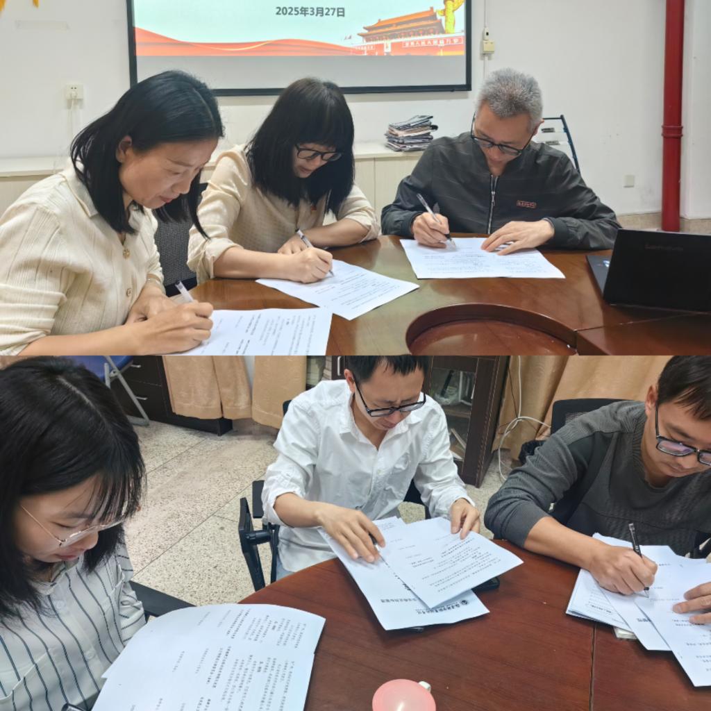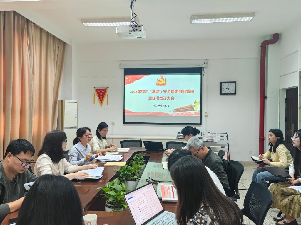 为贯彻落实学校关于综治安全稳定工作精神,进一步强化校园安全稳定管理,提升学校安全稳定工作水平,切实维护学校安全稳定,2025年3月27日,马克思主义学院在厚德楼107会议室举行2025年综治安全稳定目标管理责任书签订会。