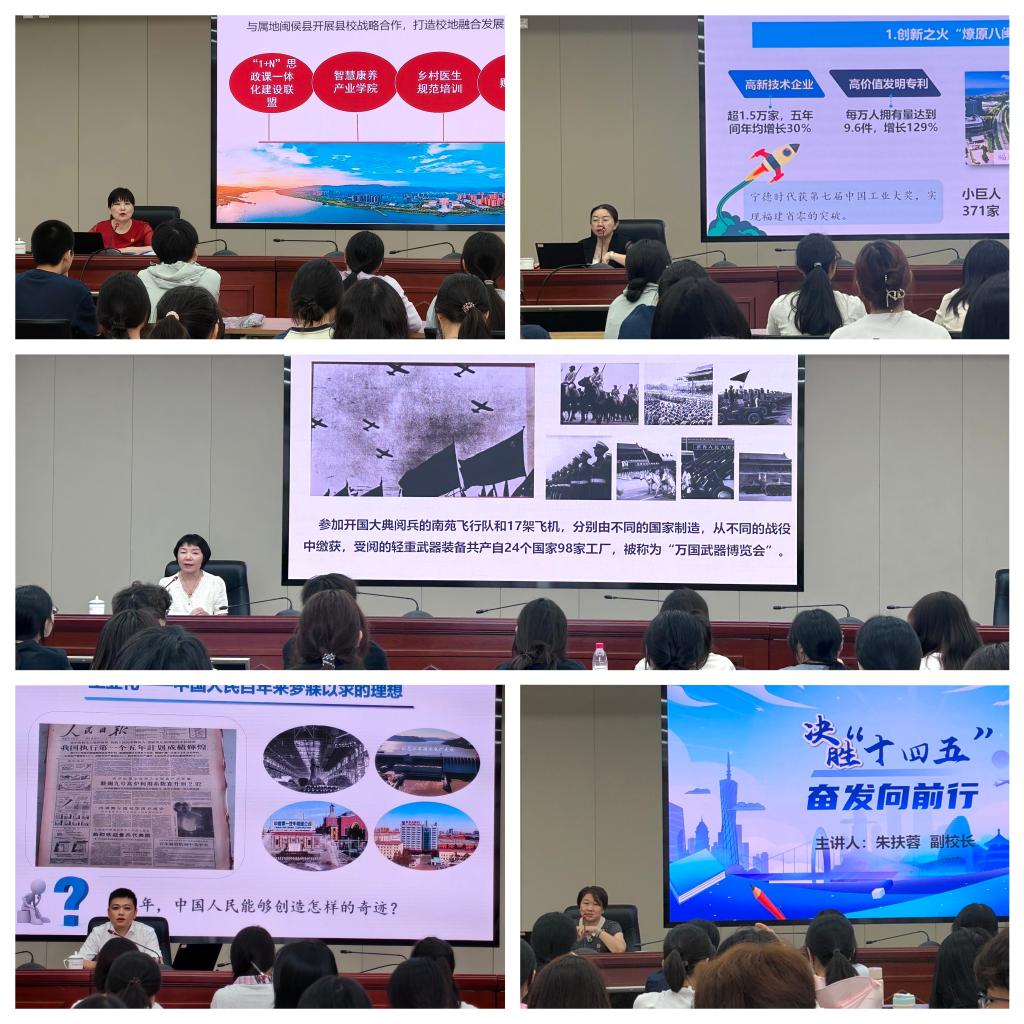 徐伟遵循中国式现代化的发展脉络,以“九三阅兵”这一标志性事件为切入点,生动讲述了我国从“工业废墟”到“硬核脊梁”的逆袭史诗,带领闽卫院师生读懂五年规划在国家治国理政中的深远意义与独特优势。他强调,总结“十四五”经验,既是为了把握规律、明确方向,更是为了凝聚共识、增强信心。面向未来,学校将全面贯彻落实国家关于职业教育改革的决策部署,紧抓“十四五”收官与“十五五”开局的关键时期,全力推动学校实现更高质量、更有效率、更可持续的发展。