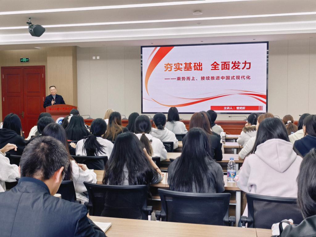为深入学习贯彻党的二十届四中全会精神,准确把握国家“十五五”规划的战略部署,进一步凝聚思想共识、强化使命担当,3月16日至19日,校党委书记曾武祈、校党委副书记李美华、纪委书记林玲和副校长黄铭珊、周雄、朱扶蓉纷纷走上讲台,为开云上千名党政干部和师生代表讲授形势政策课。