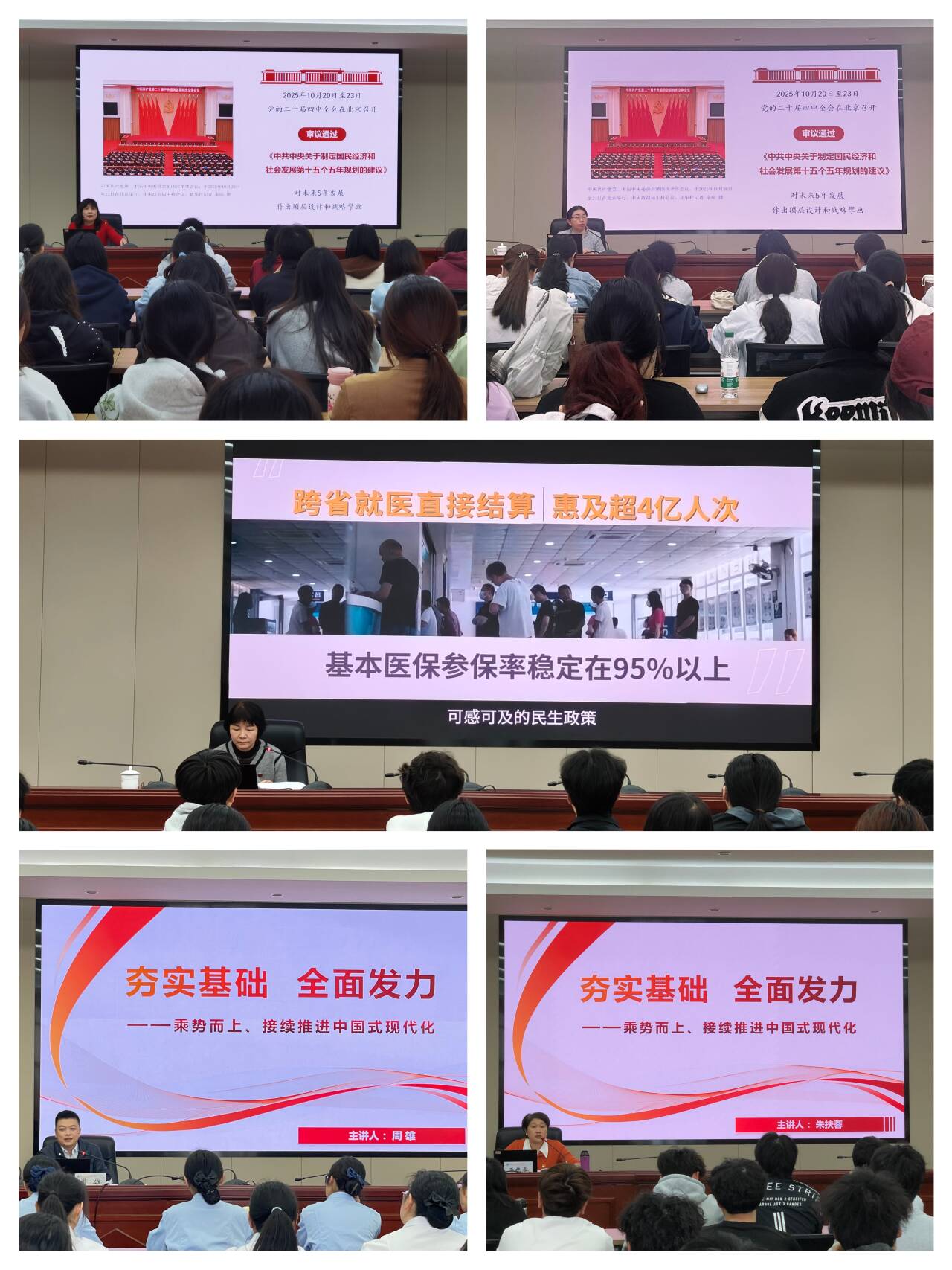 李美华、林玲、黄铭珊、周雄、朱扶蓉在授课中,聚焦开云“十五五”期间“一二三四五”的重点工作布局,以鲜活的案例为切口,直观展示了学校在专业建设、产教融合、社会服务等核心领域的显著成果与未来规划。他们强调,面向未来,学校将全面贯彻落实国家关于职业教育改革的决策部署,紧抓“新双高”建设与职业本科申报两大引擎,推动办学水平提档升级。他们勉励全体闽卫院学子,要珍视在校韶华,将专业技能锤炼成守护生命的底气,将个人志向融入卫生健康事业的高质量发展大局,在国家“十五五”新征程中,乘时代之风,蓄向上之势,成就出彩人生。