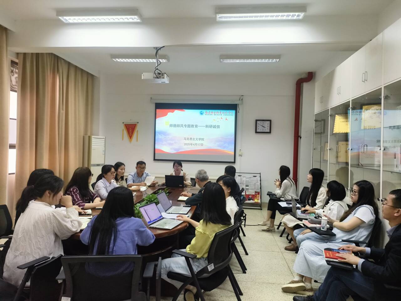 为进一步筑牢科研诚信之基,营造风清气正、崇尚科学的学术氛围,助推学校师德师风建设,4月17日,马克思主义学院召开师德师风暨科研诚信教育专题会,马院全体教师参加会议。