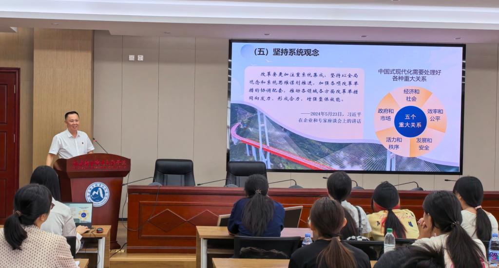 曾武祈从国家战略高度系统梳理“十四五”时期我国经济社会发展取得的突破性成就与积累的宝贵经验,深刻阐释了“十四五” 规划在全面建设社会主义现代化国家关键蓝图中的核心意义。授课中,他紧密结合学校发展实际,围绕“十五五”发展愿景与学校高质量发展路径展开深入分析,强调学校始终坚持以国家战略和区域需求为导向,以“升格本科职业大学”为发展目标,持续深耕职业教育,奋力书写新时代立德树人与办学治校的新篇章。
