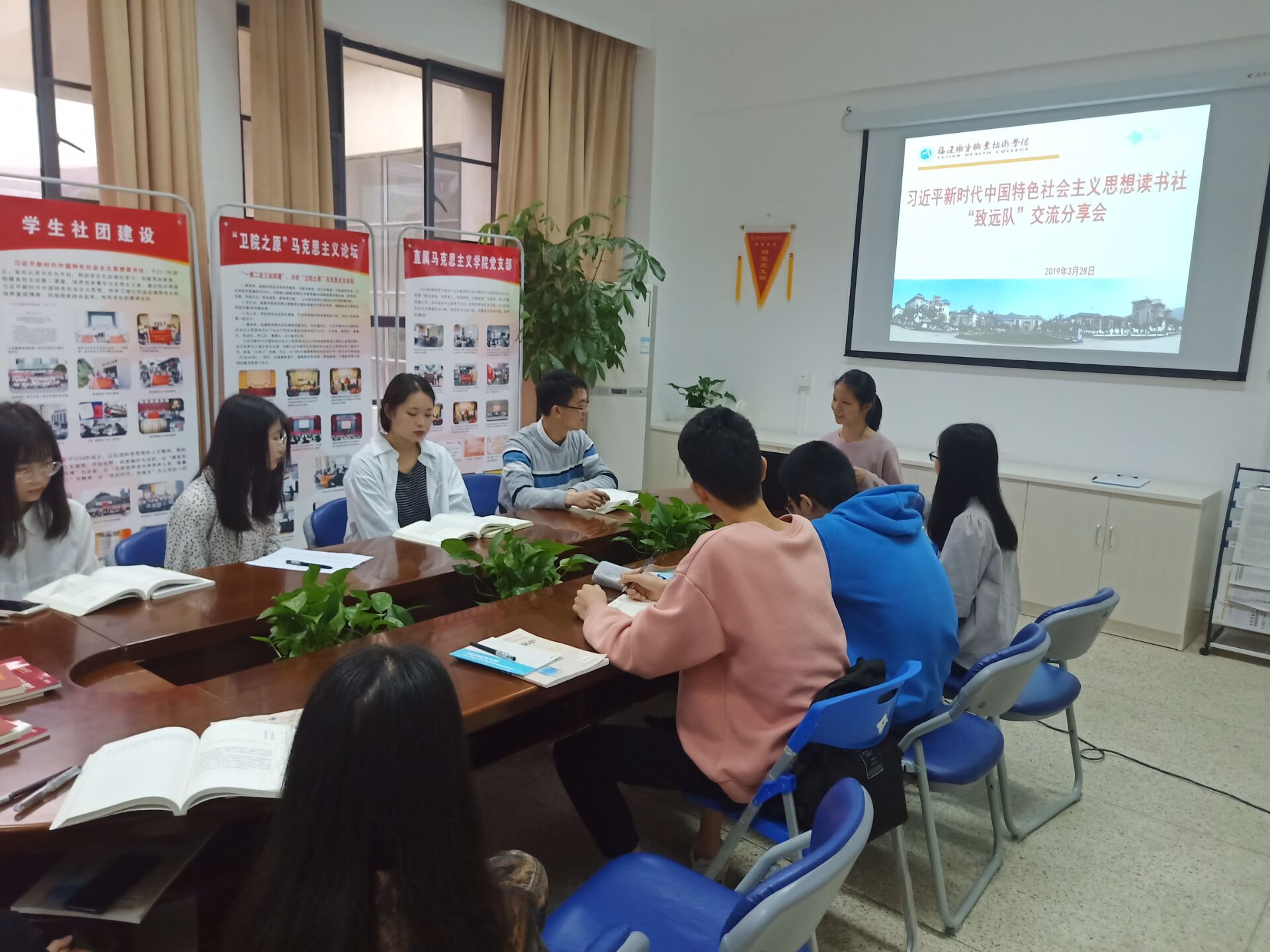 2019年3月28日下午,马克思主义学院习近平新时代中国特色社会主义思想读书社“致远队”在行政楼107会议室开展读书活动。这次活动由指导老师江洪老师主持,读书社“致远队”成员参加了此次活动。