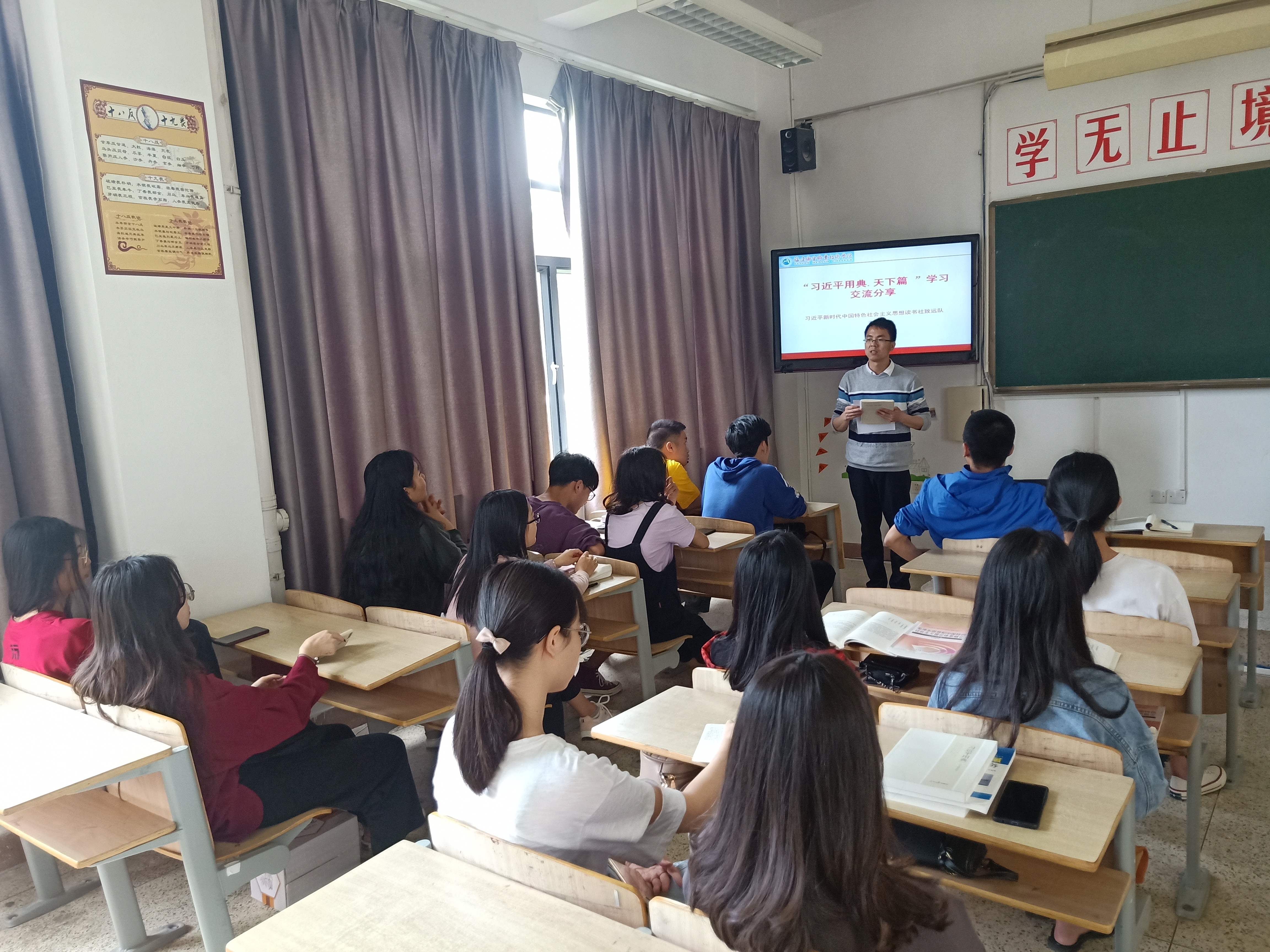 2019年4月26日下午,马克思主义学院习近平新时代中国特色社会主义思想读书社“致远队”在教学楼102教室开展读书活动。这次活动由指导老师江洪老师主持,读书社“致远队”全体成员参加了此次活动。