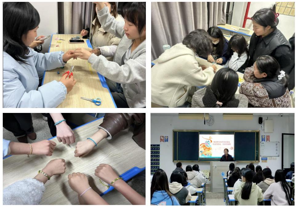 活动以中华优秀传统文化的“双创”发展为主题,旨在通过手工创作的形式,让参与者亲身体验传统文化的魅力,并激发创新思维。活动开场由社团指导老师林美辰进行主题演讲,深入阐述了中华优秀传统文化在当代的创新与创造性转化,强调了文化传承与时代发展相结合的重要性。随后,活动进入手工制作环节。同学们充分发挥想象力,挑选心仪的绳子和配饰,运用平结、蛇结等传统编织技巧,创造出独具特色的手绳。