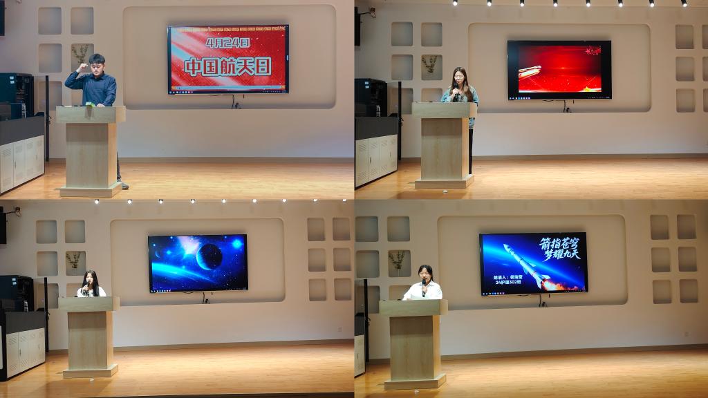 为庆祝第十个“中国航天日”,传承航天精神,激发科技报国热情,2025年4月24日,校团委社团部时代先锋协会在“一站式”学生社区举办“航天赞歌,中华骄傲”朗诵比赛,马克思主义学院丁爱芝老师、张晨琳老师及社团负责人担任评委。