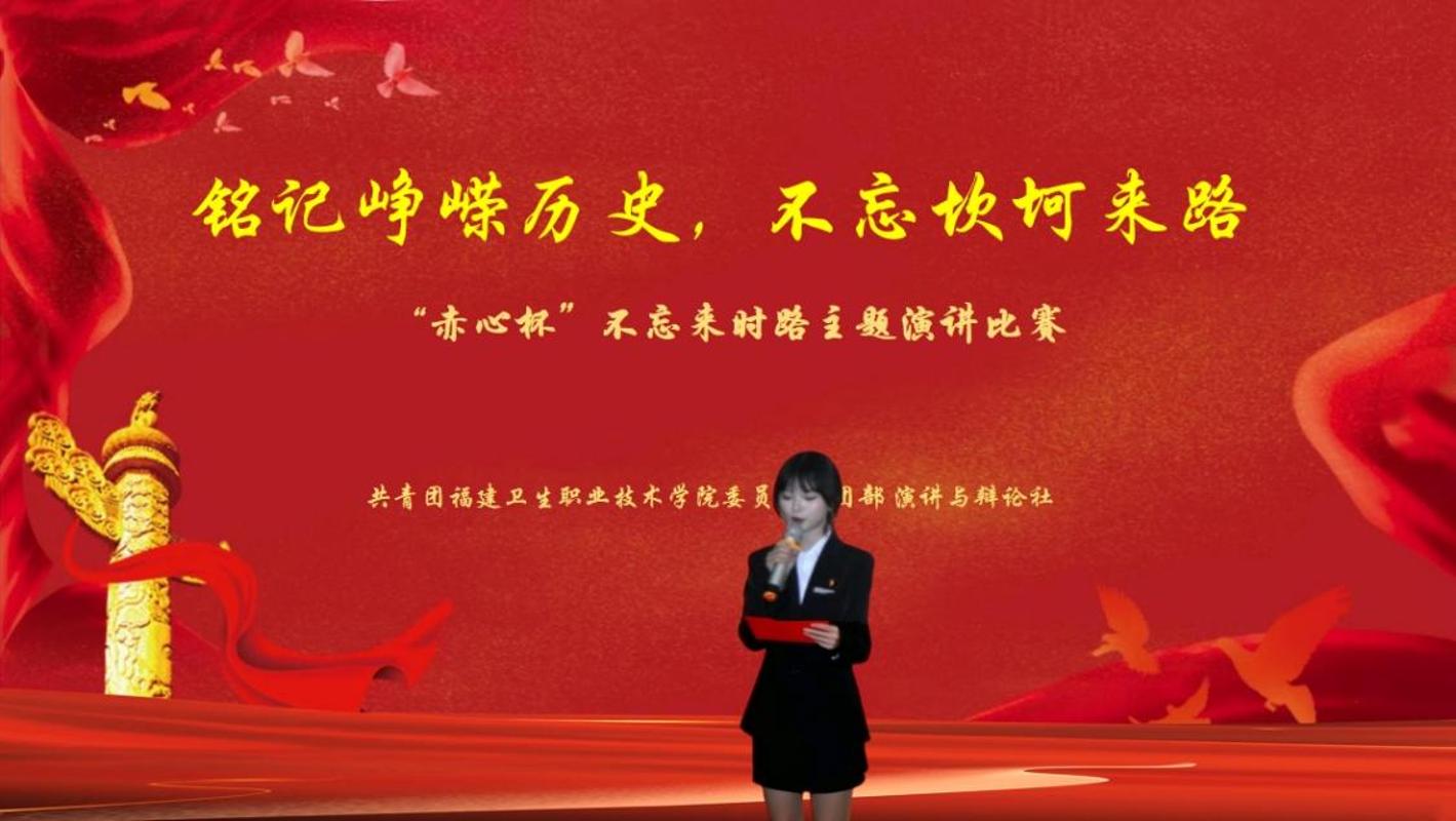 铭记峥嵘历史,是对先辈的告慰;不忘坎坷来路,是对未来的承诺。2025年9月25日,校团委社团部演讲与辩论社主办的“赤心杯”不忘来时路纪念抗日战争胜利80周年暨弘扬抗战精神主题演讲比赛,在实训楼四楼会议室隆重举行。在来朋珍、徐舒宁老师的悉心指导与社团干事团队的精心组织下,闽卫学子以声为舟,以情为帆,共同完成了一场回望坎坷征途、致敬峥嵘岁月的精神对话。他们将厚重的峥嵘历史转化为鲜活的青春实践,引导着每一位在场学子把个人理想融入时代洪流,以赤子之心铭记历史,用青春之力书写民族复兴的崭新篇章。