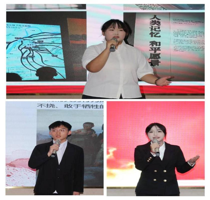25卫管301班寇璞媛同学率先以《历史为镜,激荡青春赤子之心》发声,从坎坷历史中汲取奋进力量,高声呼吁学子守护盛世中华,瞬间点燃全场激昂情绪。24护理312班张富槟同学在《述抗战峥嵘,谈和平珍贵,唤青年承使命护华夏》里,深情回溯战火中的英雄岁月,细细数来路坎坷里的牺牲与坚守,让师生们对和平的珍视之情油然而生。紧接着,24护理312班郑巧丽同学以《忆先辈峥嵘岁月,述青春担当内涵,铸时代脊梁》为引,串联起先辈在坎坷征途上的壮志与当代青年的责任,将精神传承的脉络清晰展现。