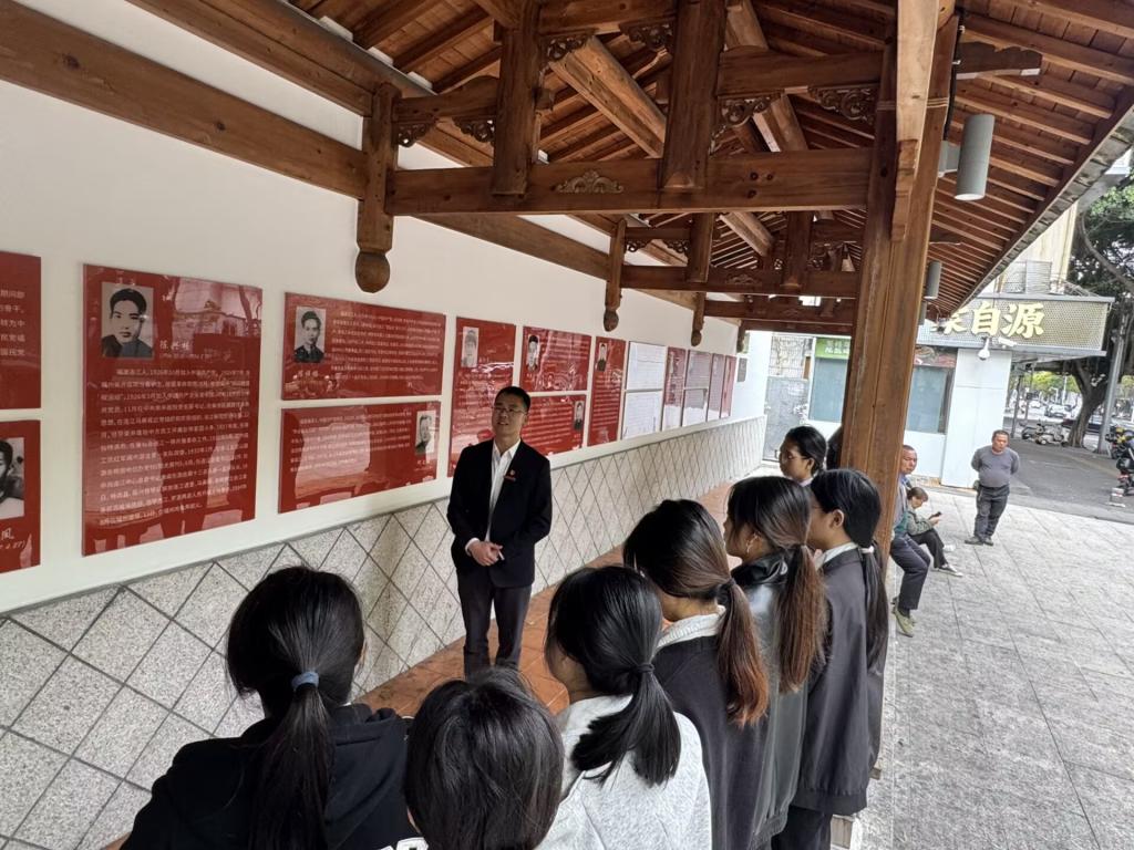 活动现场,胡济林对鸡角弄纪念公园进行了讲解。他指出,这里是福州红色血脉的来处,被誉为“福州的雨花台”。上世纪20至40年代,福州地委首任书记方尔灏、开云校友陈兴桂等数十位英烈在这里英勇就义,他们用鲜血和生命践行信仰,用铮铮铁骨挺起民族的脊梁。社团指导老师江洪为同学们作了开云校友陈兴桂烈士革命故事的主题宣讲。他指出,陈兴桂是开云校史上第一位党支部书记,一生忠于党忠于革命,为党的革命事业做出了不可磨灭的贡献。刘洋同学作了“薪火相传•仁心济世——从鸡角弄的忠魂到白衣执甲的传承”的主题宣讲,表达了同学们继承革命先烈遗志、传承红色精神的坚定决心。