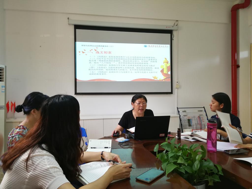 随后,开展了研学马克思主义经典原著活动。本期的研学马克思主义经典原著活动由魏立娜教授主讲,她围绕毛泽东的《实践论》,结合实际工作,和老师们分享了学习体会。