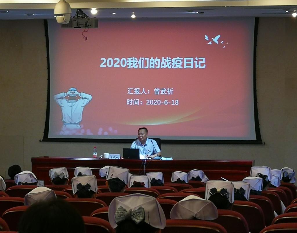 2020年6月18日下午,直属马克思主义学院全体教师党员在实训楼4楼报告厅参加校党委书记曾武祈党课——“2020我们的战疫日记”。