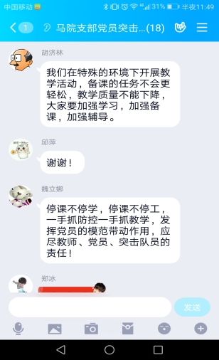 为进一步做好新型冠状病毒疫情防控工作,根据学校疫情防控工作领导小组的工作部署,2020年2月19日晚,直属马克思主义学院党支部通过QQ线上平台召开全体党员学习教育会。会议由党支部副书记来朋珍主持,马院全体教师党员参加了会议。