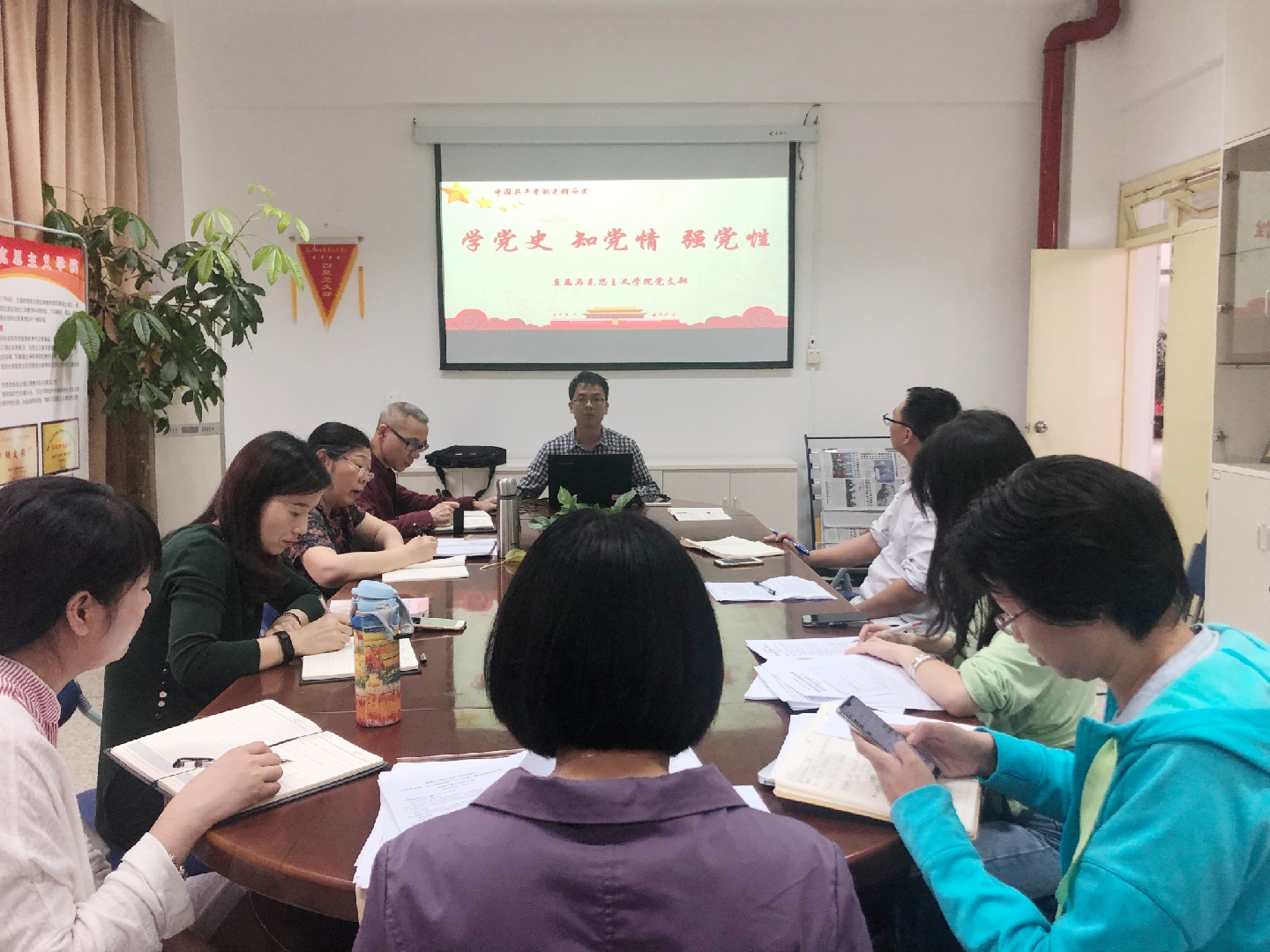 为庆祝中国共产党成立98周年,6月13日上午,直属马克思主义学院党支部举办党课,由党支部宣传委员江洪为全体党员上了主题为“学党史、知党情、强党性”的党课,共同回顾了党的光辉历程。