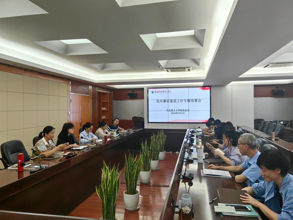 为贯彻落实党的二十届三中全会精神,深入学习贯彻习近平总书记关于党的自我革命的重要思想,9月5日,马克思主义学院党总支在厚德楼四楼会议室开展党风廉政建设工作专题部署会。研究新学期党风廉政建设工作,并开展警示教育。
