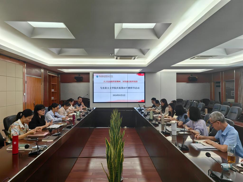 会上,马克思主义学院组织庆祝第40个教师节活动,活动首先重点学习了习近平总书记重要文章《培养德智体美劳全面发展的社会主义建设者和接班人》,同时跟进学习近期习近平总书记的重要讲话精神、《中共中央、国务院关于弘扬教育家精神加强新时代高素质专业化教师队伍建设的意见》以及育人楷模先进事迹,而后,教师们集体观看示范微党课与教育警示片并进行了思政课教师宣誓,由赖文金同志领誓。