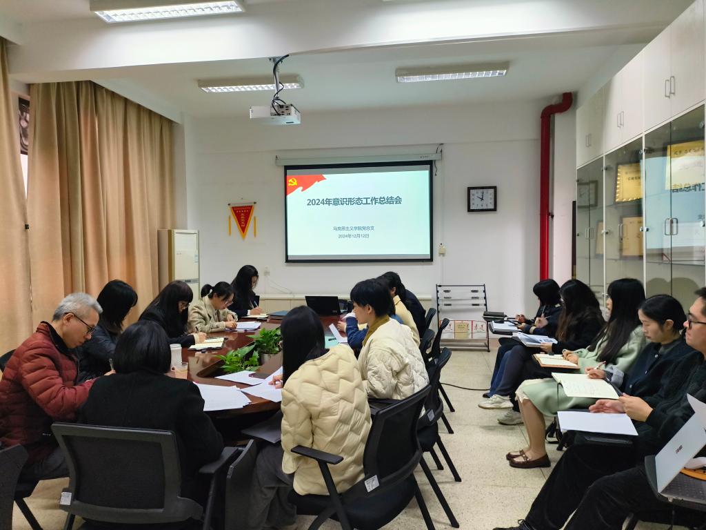 2024年12月12日,马克思主义学院党总支在行政楼107会议室召开2024年意识形态工作会议。会议由马院党总支书记熊美兰主持,马院党总支副书记赖文金汇报工作,马院全体党员参加会议。