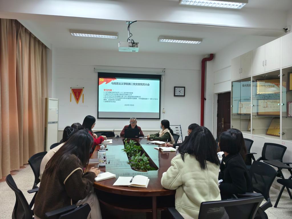 2025年1月2日,马克思主义学院第二党支部在厚德楼107马克思主义学院会议室召开党员大会,组织开展一系列重要理论学习。会议由党支部书记胡济林主持,党支部全体党员参加。