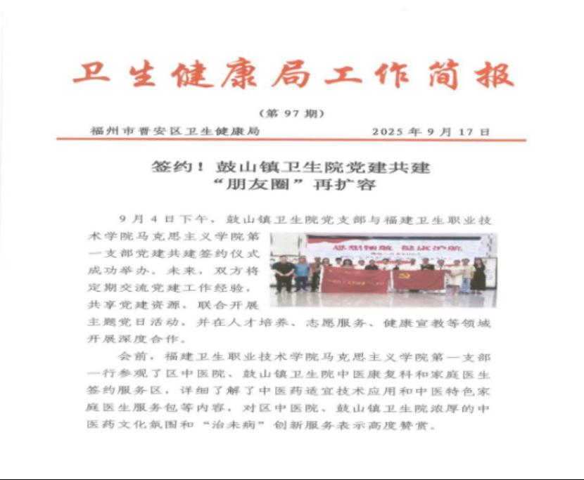 【福建卫生报】【福州市晋安区卫生健康局工作简报】【福州市晋安区医院微信公众号】【晋安区中医院暨鼓山镇卫生院微信公众号】“星火领航”聚合力 共建实践促发展——马克思主义学院第一党支部党建共建外媒报道篇