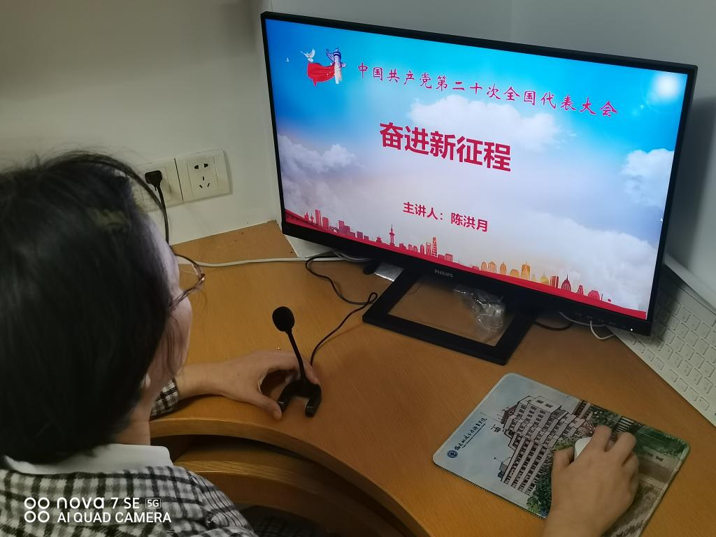 习近平总书记在党的二十大报告中强调必须坚持守正创新,号召我们“坚定信心、守正创新,奋力谱写全面建设社会主义现代化国家新篇章”。习近平总书记科学判断中国发展方位,深刻洞察新的时代特征。为认真学习宣传贯彻党的二十大精神,2022年11月23日晚,马克思主义学院教师陈洪月在学习通直播间通过云端为时代先锋协会社团成员开展了以“奋进新征程——学习领会党的第二十次全国代表大会精神”为主题的宣讲。此次活动是马克思主义学院学习贯彻党的二十大精神系列宣讲活动之一。