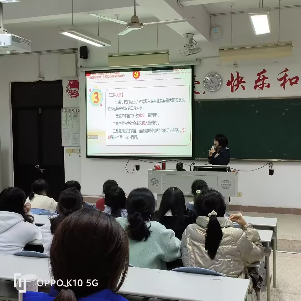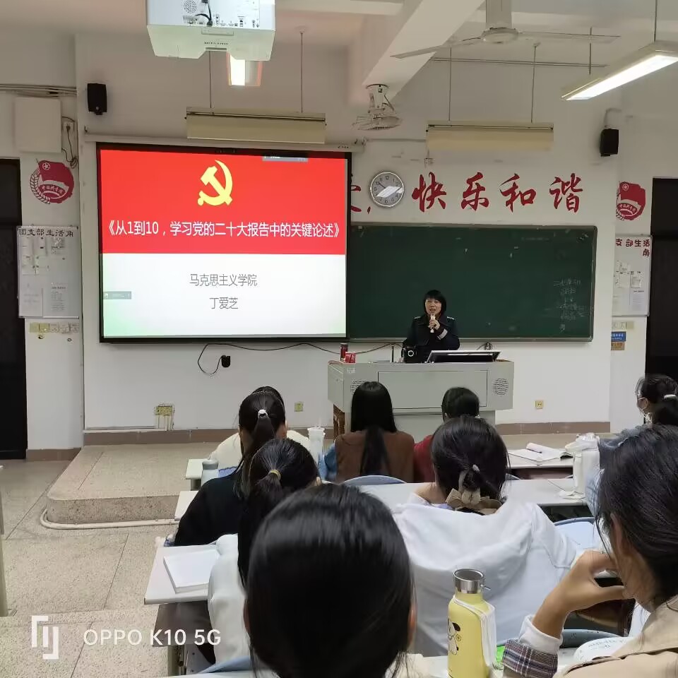 思想指引方向,灯塔照亮航程。为深入学习宣传贯彻党的二十大精神,2022年12月9日,马克思主义学院教师丁爱芝为22助产305-306班学生和时代先锋协会成员开展了以“从1到10,学习党的二十大报告中的关键论述”为主题的宣讲。
