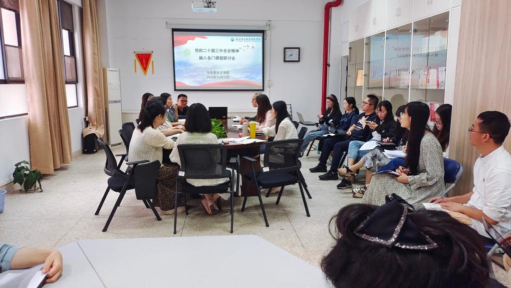 为深入学习贯彻党的二十届三中全会和全国教育大会精神,进一步推动思想政治理论课改革创新,2024年10月10日,马克思主义学院在厚德楼107开展党的二十届三中全会、全国教育大会精神融入思政课交流研讨会。