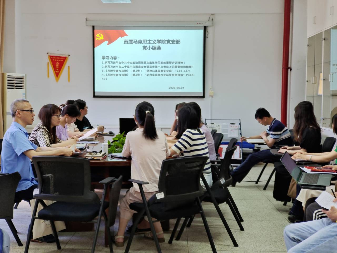 2023年6月1日,直属马克思主义学院党支部在行政楼107会议室开展党小组理论学习。会议由党支部书记熊美兰主持,支部全体党员参加。
