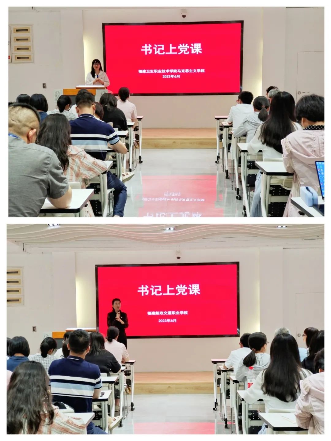 双方各自介绍了深入开展学习贯彻习近平新时代中国特色社会主义思想主题教育的相关情况,并聚焦党建、职教文化、优秀传统文化、船政文化、红医文化等方面开展热烈讨论。交流研讨后,熊美兰以“练好马克思主义看家本领”为题,从理论、历史、实践三重维度论述思政课教师要把马克思主义看家本领学到手。黄奕以“加快推进教育现代化,建设教育强国”为题,阐述了教育现代化的历史演变和加快推进教育现代化的重要成就。两场党课激发在场党员用初心和匠心,坚守思政岗位、建功新时代的使命感。双方希望以此次主题教育现场教学为契机,在党建发展、教学科研等方面继续深入合作、交流互鉴,为培养新时代人才贡献职教力量。