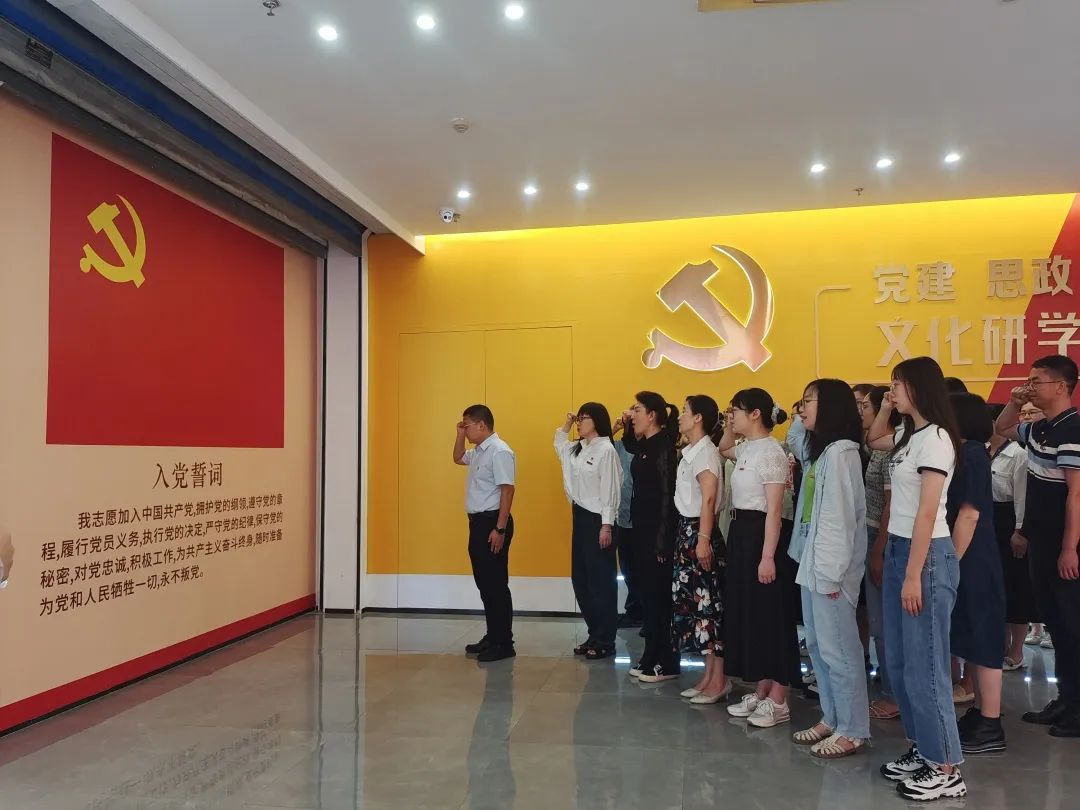 面向鲜红的党旗,在张建国的带领下,全体党员高举右拳重温入党誓词。宣誓声响彻大厅、久久回荡,是对初心使命的再宣誓,是接续奋斗的再出发。