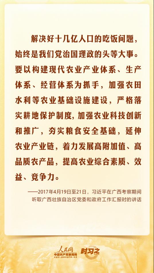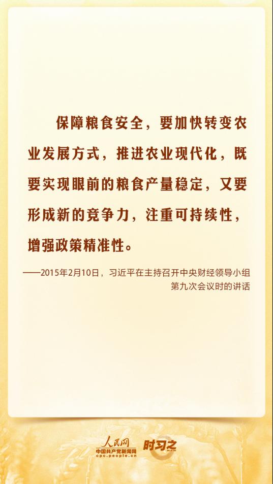 在第五个“中国农民丰收节”到来之际,让我们一起重温习近平总书记的相关重要论述,始终绷紧粮食安全这根弦。