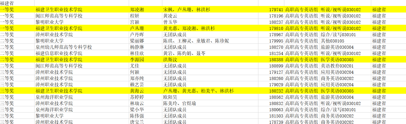 近日,“全国高校教师教学创新大赛——第六届外语微课大赛”复赛落下帷幕,经过初赛推荐、专家评审等多轮激烈角逐,我院基础部外语教研室教师作品脱颖而出并斩获多个奖项,郑凌湘、卢丛珊老师两组团队作品均获福建省高职高专组一等奖,李源园、黄海云老师两组团队作品分别荣获福建省高职高专组二等奖和三等奖。