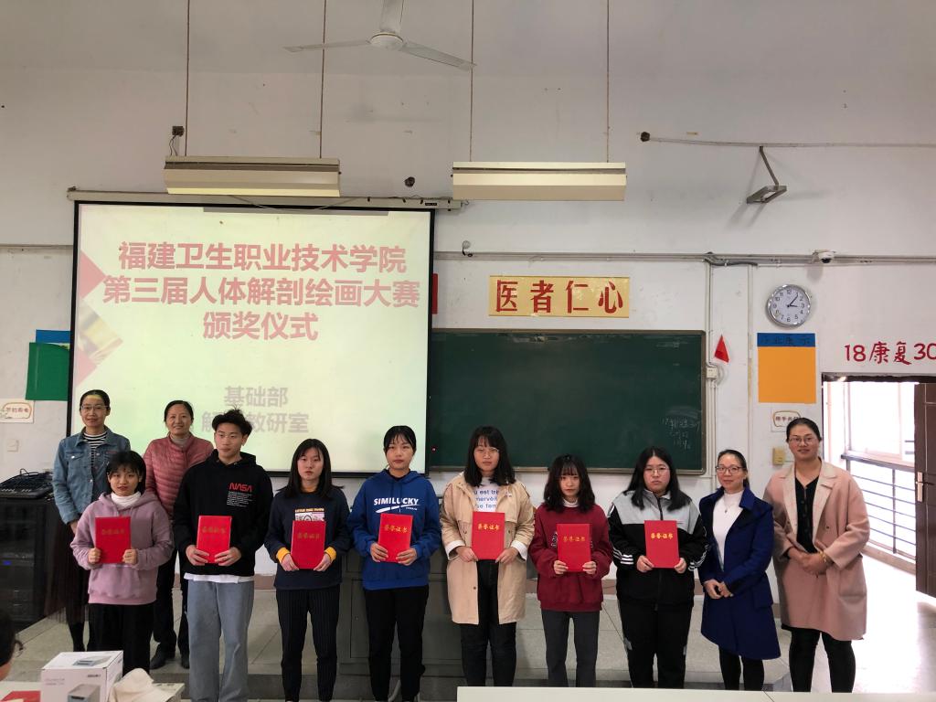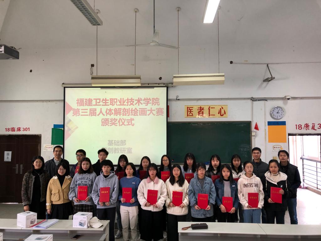 基础部解剖教研室于2019年12月-2020年1月成功举办了开云在线登录app入口第三届人体解剖绘画大赛。2020年1月9日,大赛颁奖仪式在基础部第二阶梯教室举行。基础部叶菁主任、阮秋容副主任、办公室杨林主任、基础部生理、病理、解剖教研室主任、解剖教研室的老师们和获奖同学们参加了本次活动。
